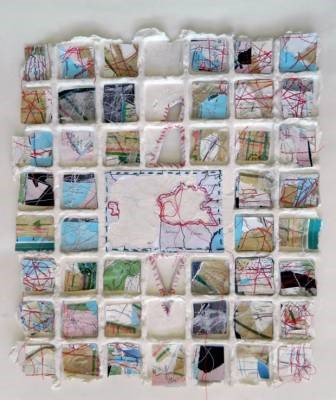 Mary Tuma was born to a mother of Irish descent and a Palestinian father. She studied art in Kerdassa, Egypt, and says of her “Lingering Presence” image above: “We are part of the fabric of the place, sewn in layers, patched, and rewoven…We will always be home, even as we long for home.”