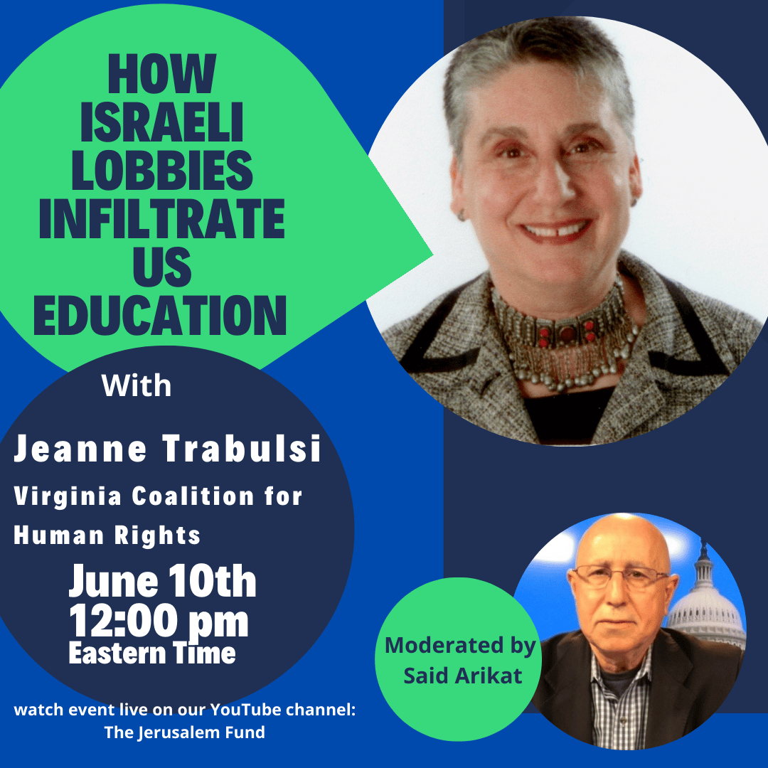 Jeanne will discuss how Israeli lobby organizations try to infiltrate the US education system and how they fought against it.