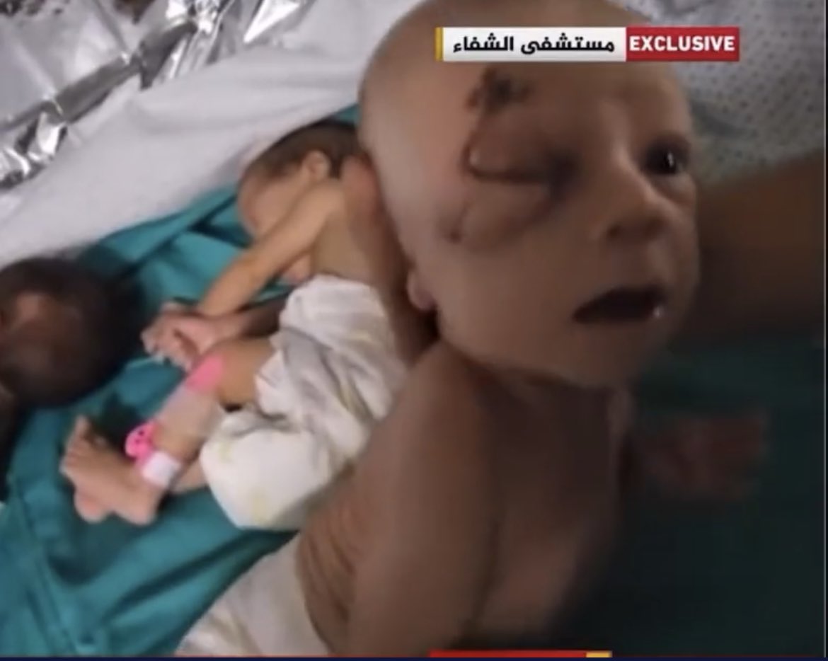 (An injured NICU baby at Al-Shifa hospita)