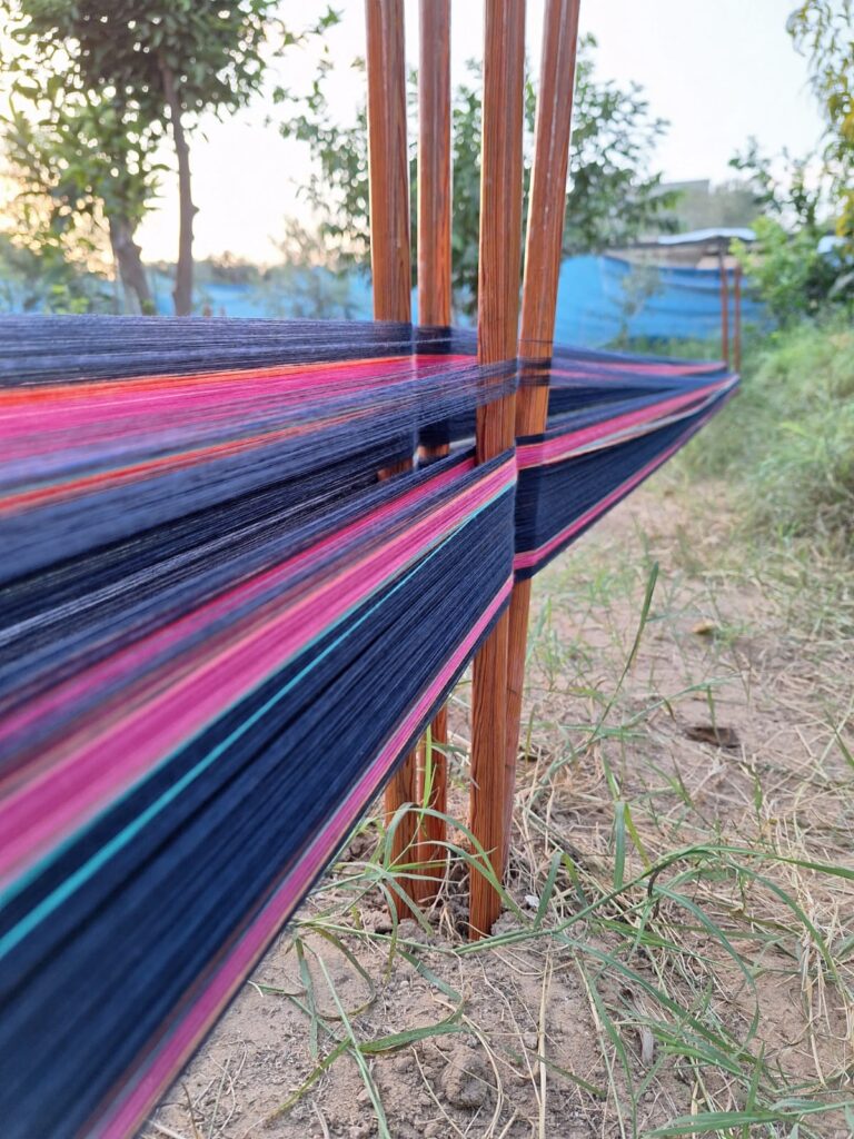 In September 2024, Hossam reopened his workshop in Cairo, but everything had to begin from scratch. Materials were unfamiliar. Tools unavailable. Hossam searched for carpenters who could understand the loom and Majdalawi weaving practices. He adapted the Majdalawi system to smaller, enclosed workshop spaces. Only dyeing remained external.